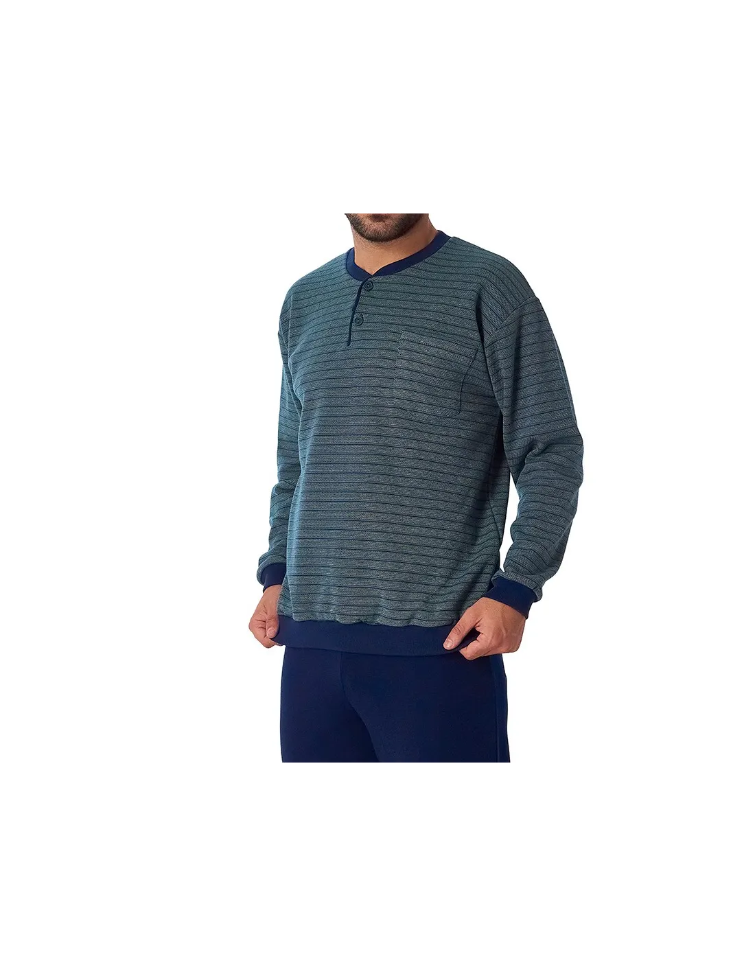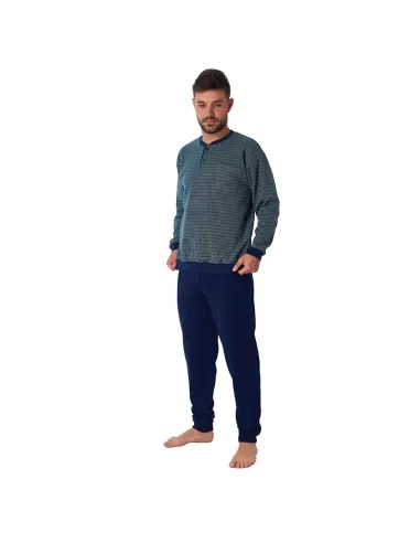 El Pijama de hombre Tokio ha sido confeccionado en suave punto de algodón con cálido afelpado interior. Ha sido fabricado por nuestra firma española de confianza Dormen, símbolo de muy alta calidad.