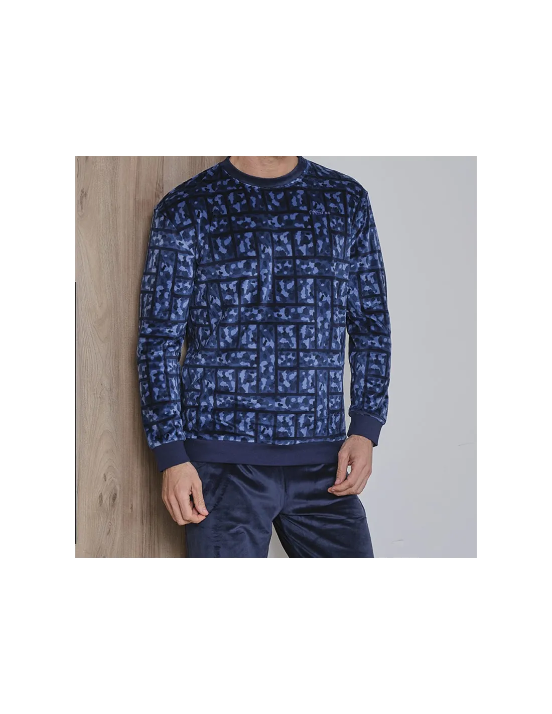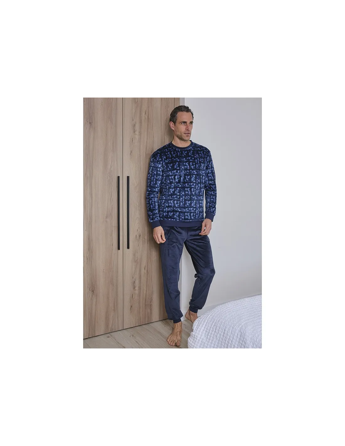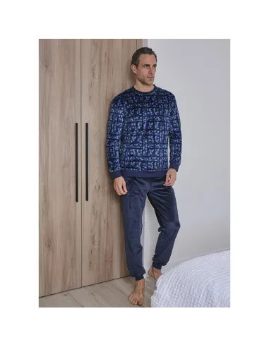 - Pijama de invierno fabricado en cálido tejido de microvelour(terciopelo elástico) con suave afelpado interior.