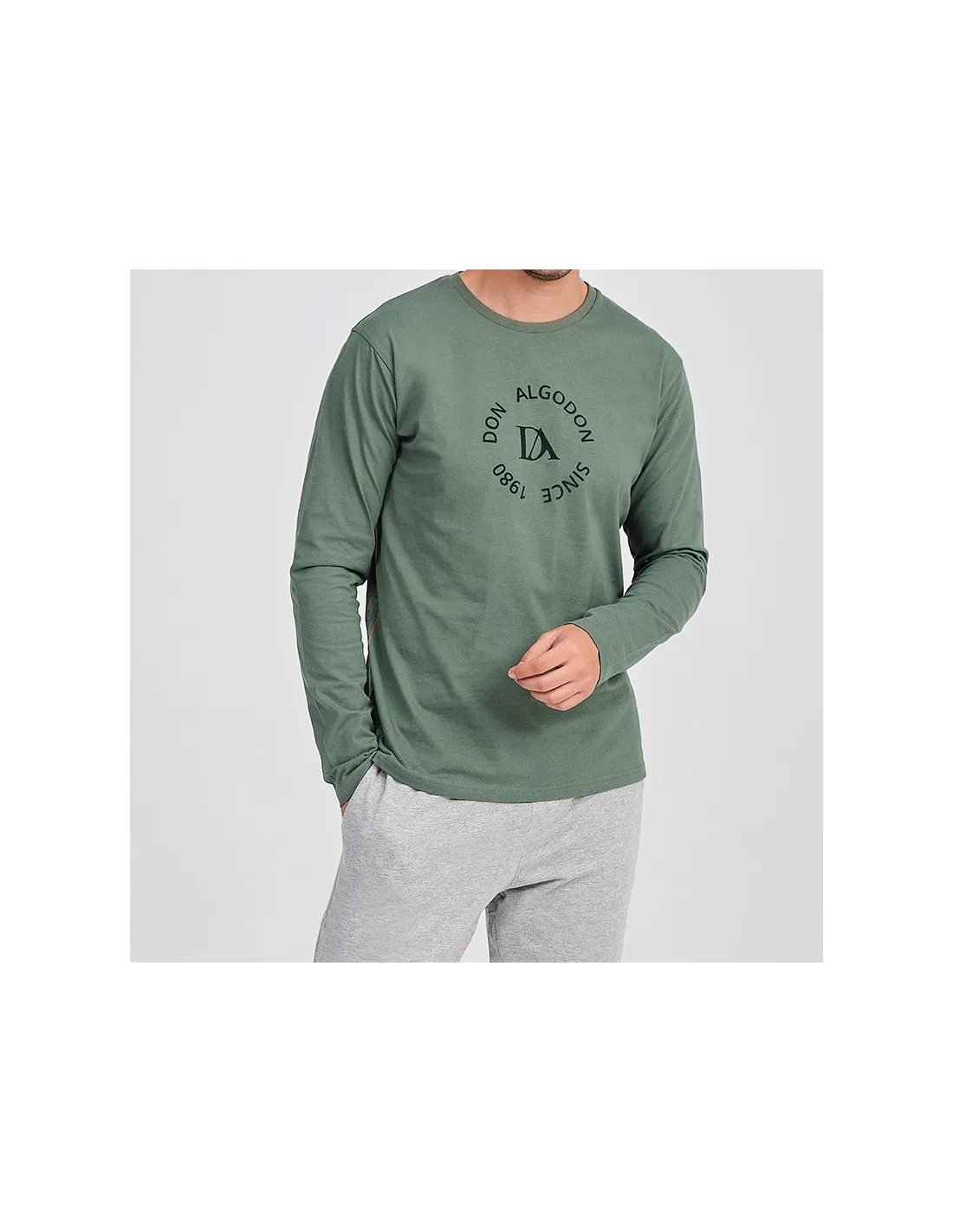 Composición: 100% algodón. Es de color verde caza y pantalón gris claro vigoré. Se fabrica desde la talla M hasta la talla XXL. Se presenta en caja.