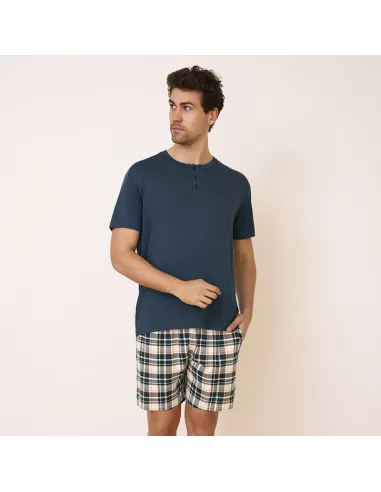 El Pijama Scottish es un pijama de manga corta y pantalón corto para hombre confeccionado en suave y finísimo punto de viscosa. Ha sido fabricado por nuestra firma de confianza Promise, símbolo de muy alta calidad.