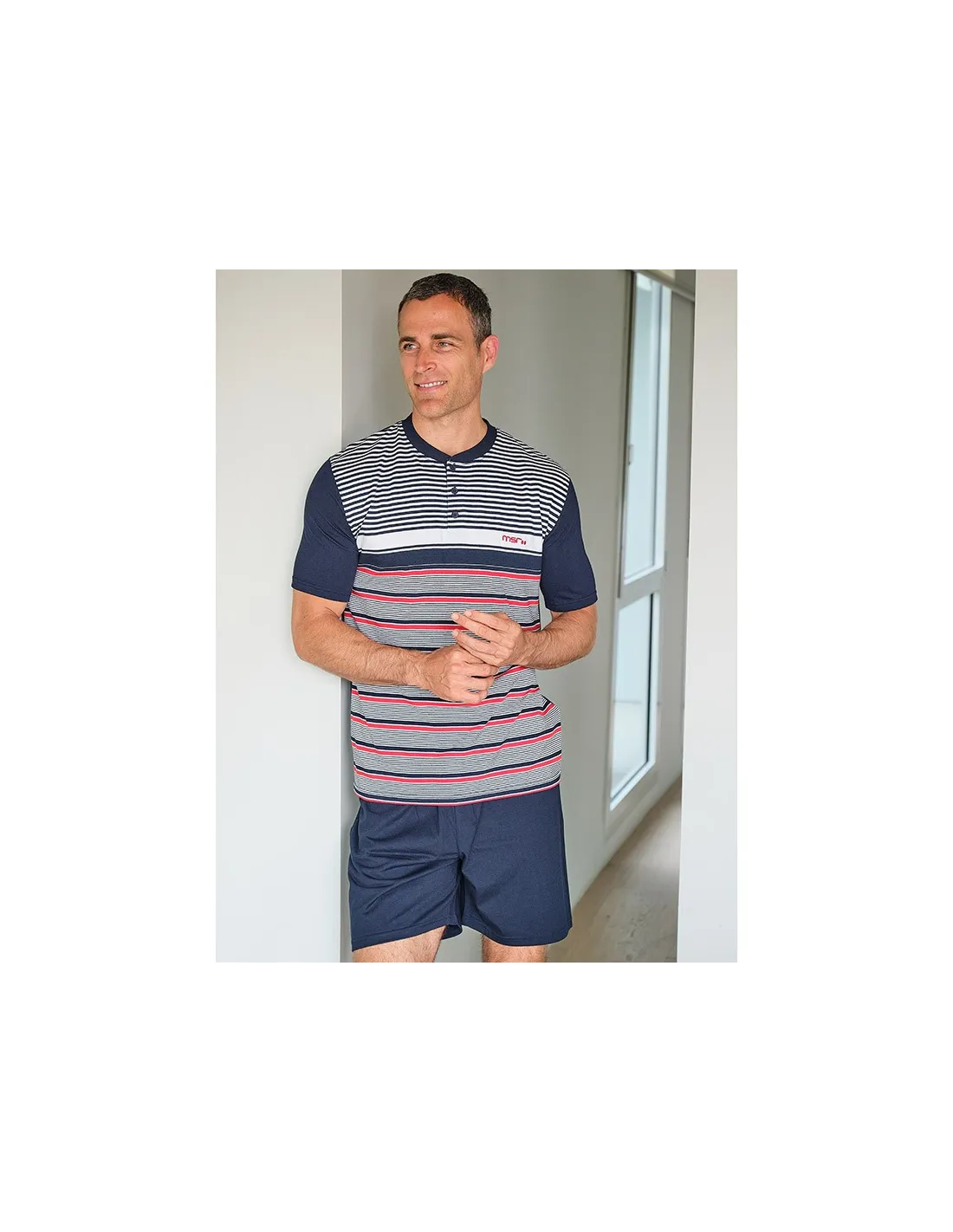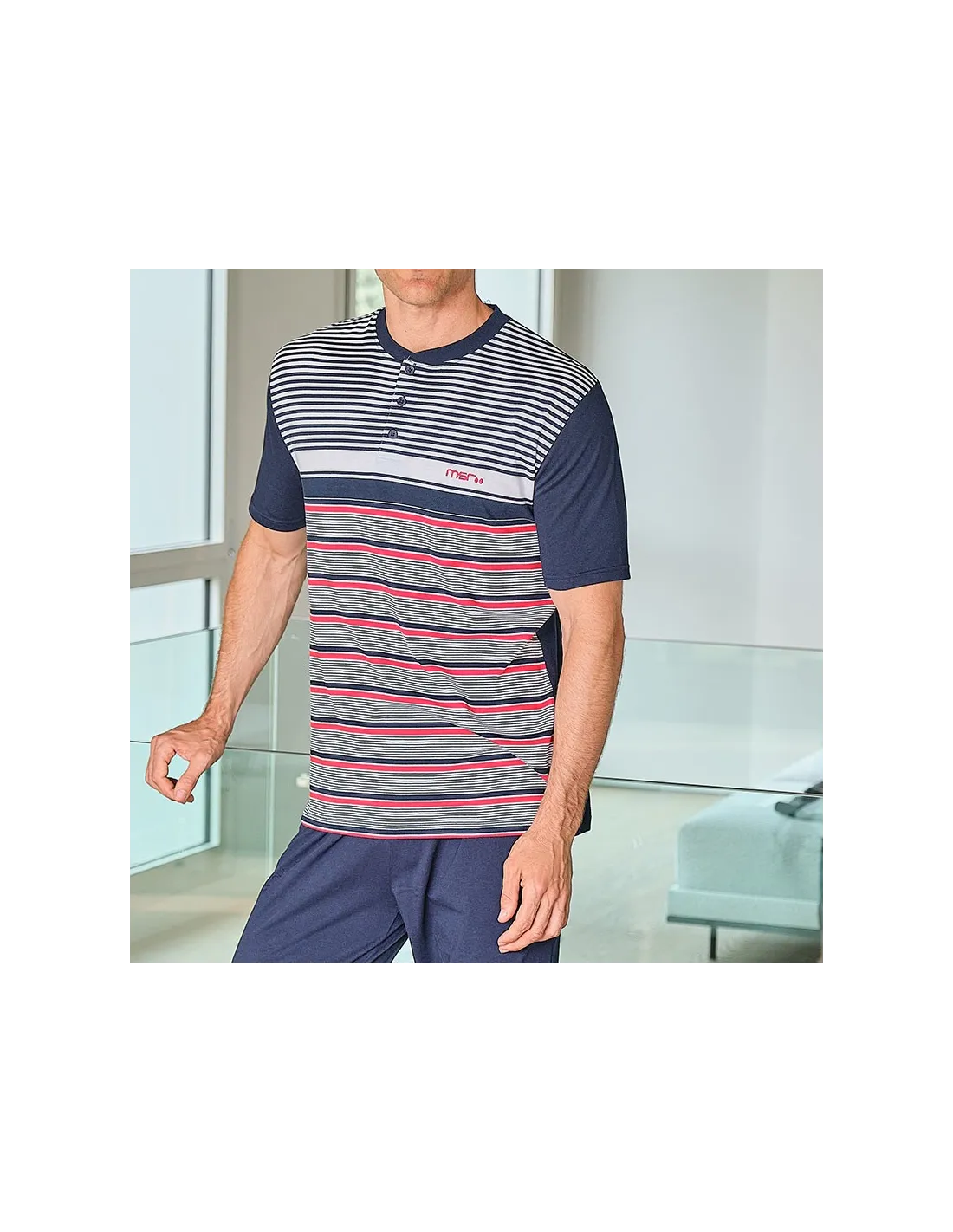- Pijama de hombre de manga corta y pantalón corto.