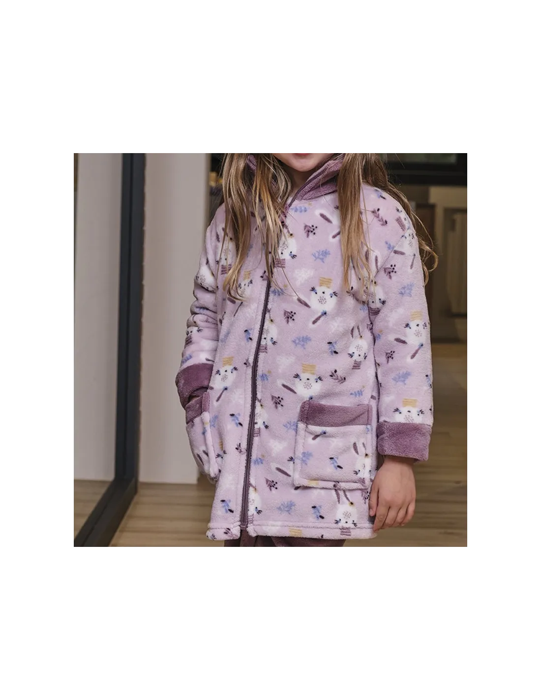 La Bata infantil Conejita feliz es una bata de cremallera y ha sido confeccionada en cálida y esponjosa coralina. Ha sido fabricada por nuestra firma de confianza Muslher, símbolo de muy alta calidad.