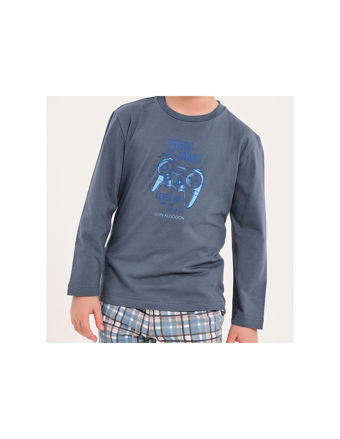 El Pijama Don Algodón Game ha sido confeccionado en suave punto de algodón 100%. Ha sido fabricado por nuestra firma de confianza Don Algodón, símbolo de muy alta calidad.