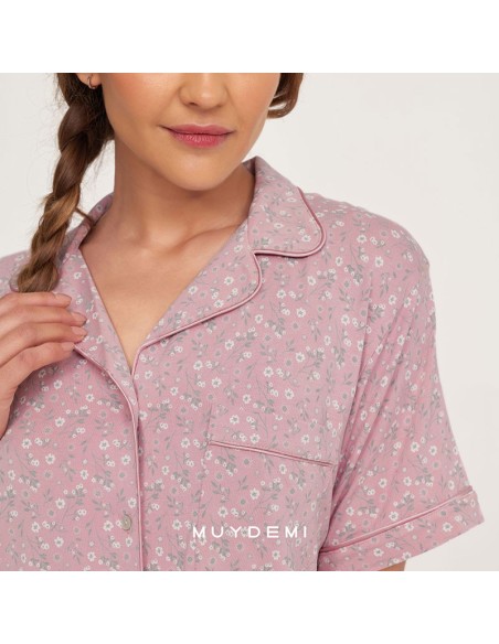 El cómodo y suave Pijama abierto Rosa palo de la marca Muydemi es un pijama abierto para mujer de verano ideal para afrontar los días calurosos con clase, comodidad y estilo. Esta prenda tendencia está fabricada con tejidos frescos y suaves, perfectos para las noches más acaloradas.