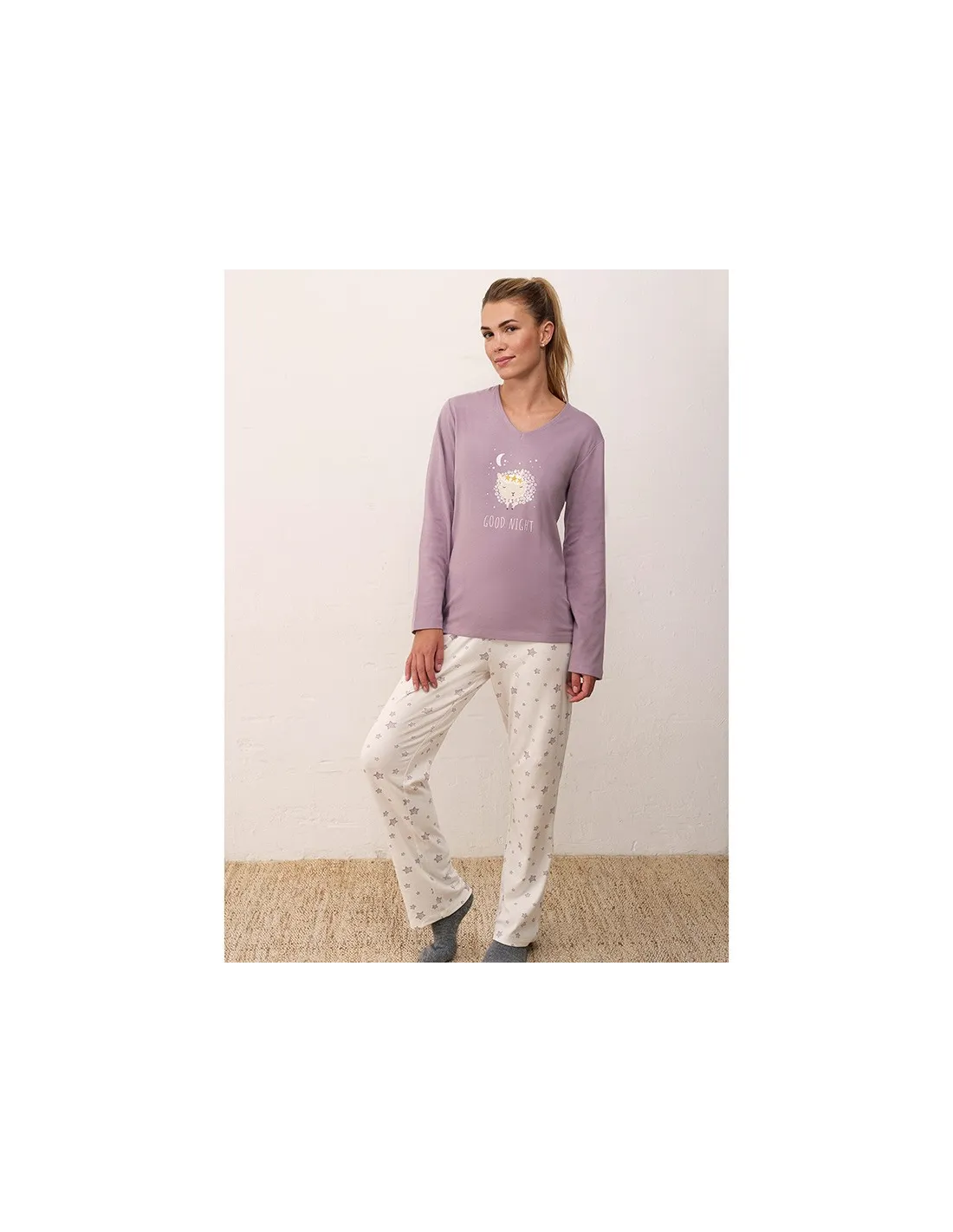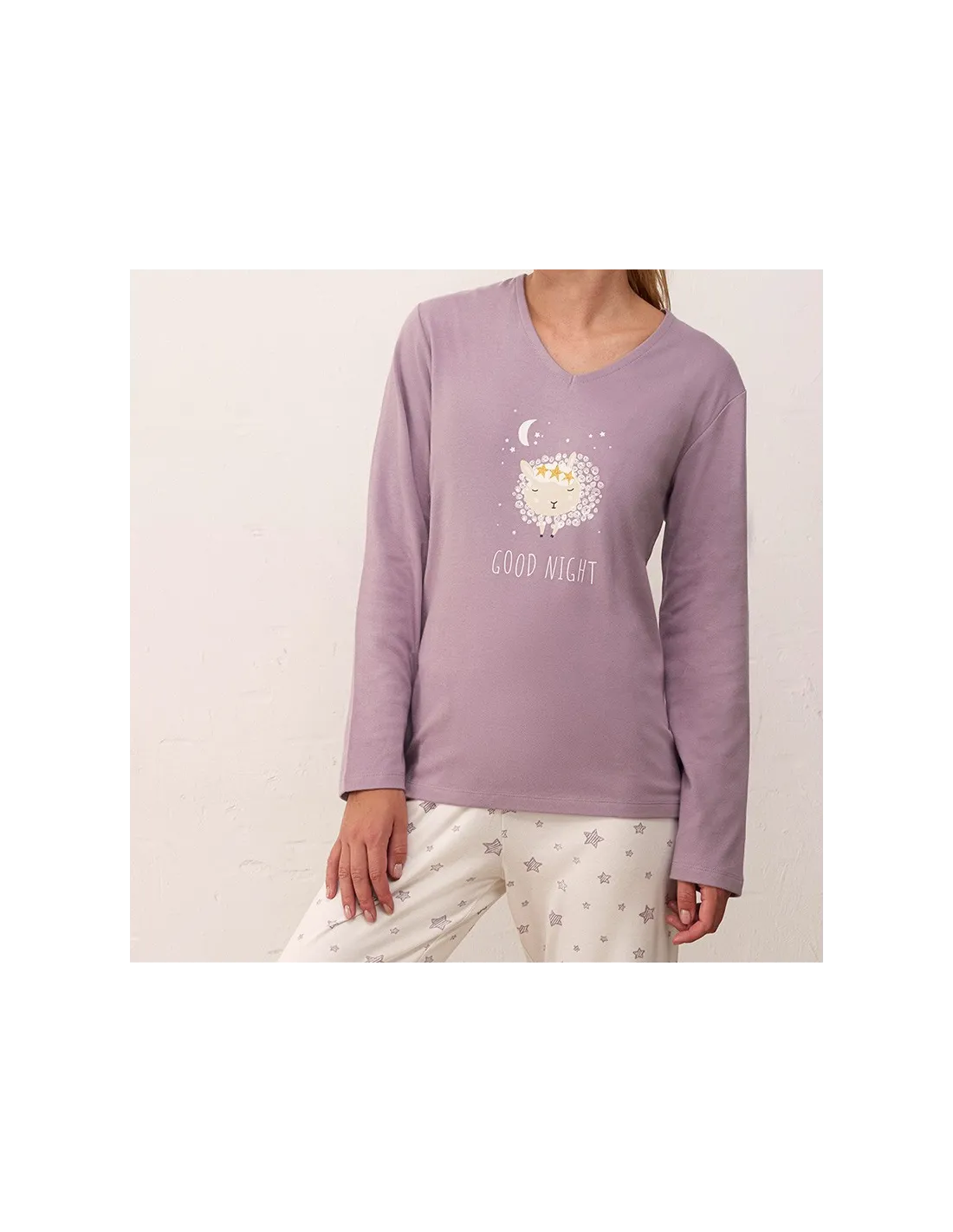 - Pijama de manga larga fabricado en suave punto de algodón 100%.